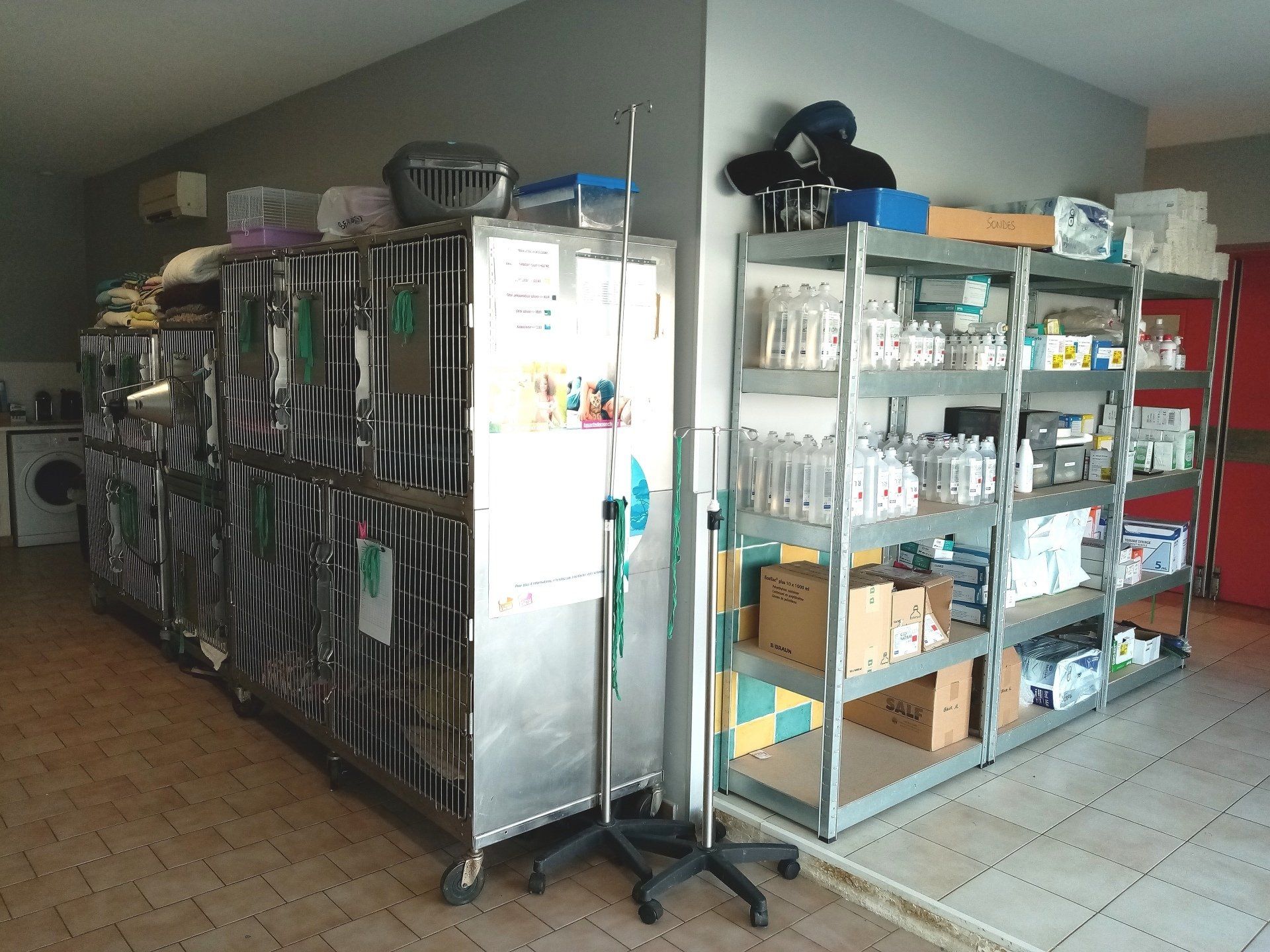 La chatterie est séparée de l 'espace des chiens pour diminuer leur stress.